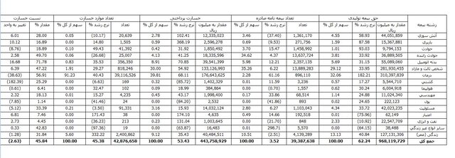 البته، ۳۹.۸ درصد از خسارت پرداختی در بازار بیمه طی این مدت به رشته بیمه درمان، ۳۰ درصد به بیمه شخص ثالث و مازاد و ۹.۱ درصد به بیمه زندگی(عمر) مربوط می شود.